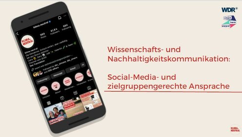 Jule Zentek, Journalistin und Presenterin bei klima.neutral, gab Einblicke in die redaktionelle Arbeit des Instagram-Kanals und zeigte auf, wie Klima- und Wissenschaftskommunikation für eine junge Zielgruppe funktionieren kann. Für klima.neutral sei es wichtig, unterschiedliche Perspektiven aus Wissenschaft, Politik und Zivilgesellschaft abzubilden und insbesondere auch, gutes Community-Management zu betreiben, um den Austausch unter den Follower*innen anzuregen und deren Sichtweisen Raum zu geben. Während Aktualität, Ratgeberthemen, bekannte Protagonist*innen und Posts, die zum Meinungsaustausch anregen, besonders gut funktionieren, kommen oberflächlicher Content, wenig Aktualität oder Alltagsbezug in der eher jungen Community nicht gut an (Präsentation als PDF downloaden).